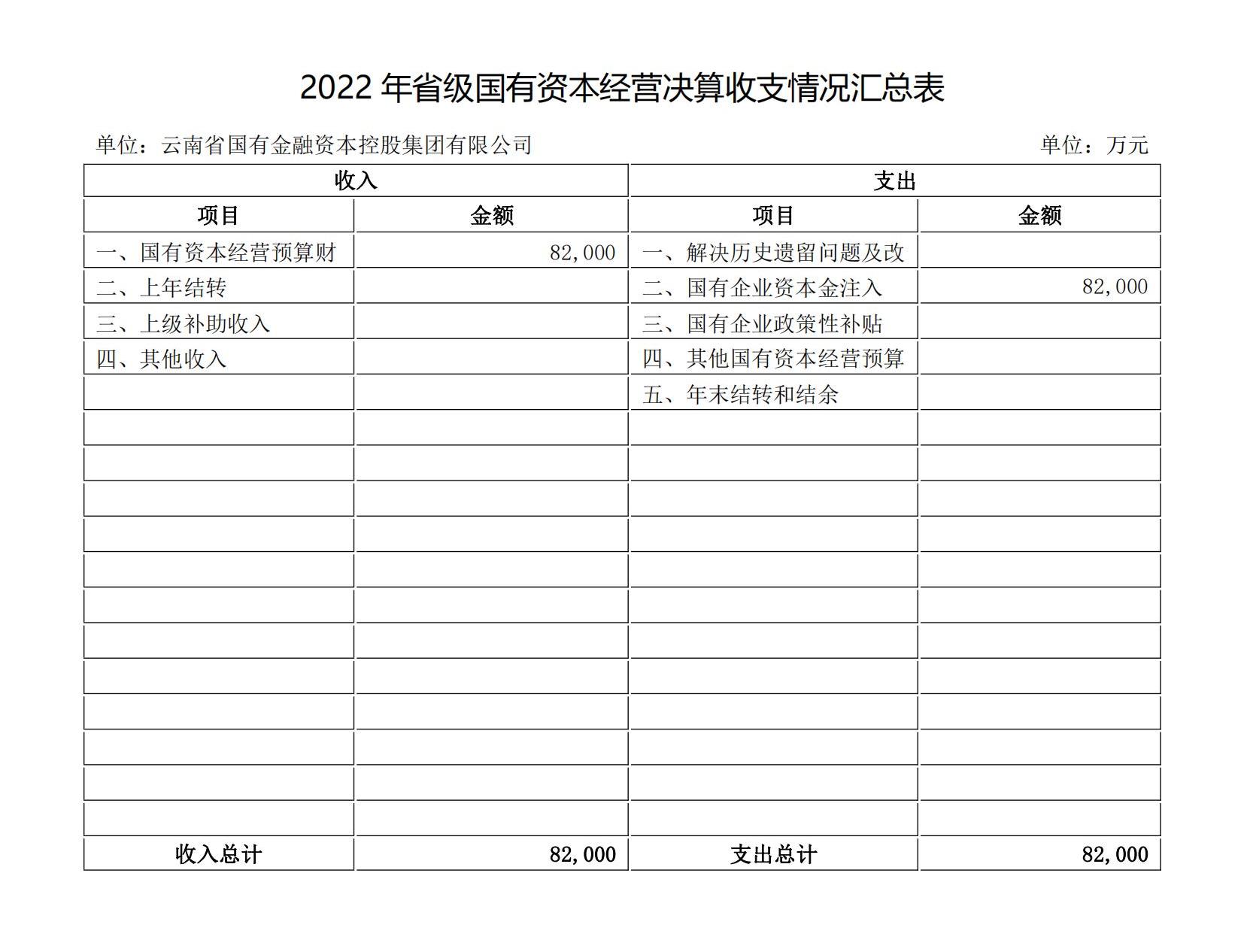 根據(jù)《云南省財(cái)政廳關(guān)于2022年度國(guó)有資本經(jīng)營(yíng)決算的批復(fù)》(云財(cái)資〔2023〕71號(hào))要求,現(xiàn)將我公司2022年國(guó)有資本經(jīng)營(yíng)決算情況公示如下: