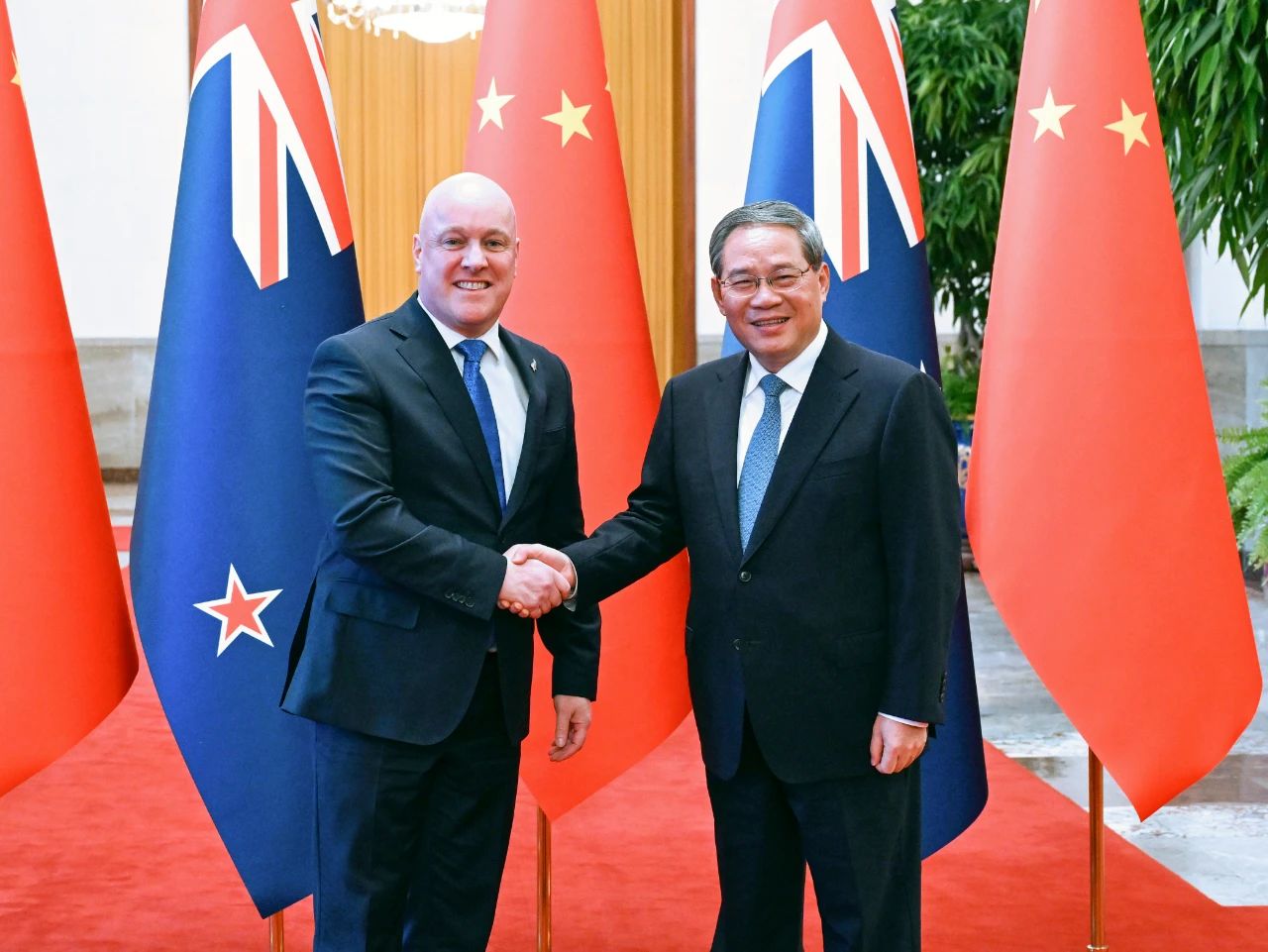 國務(wù)院總理李強(qiáng)6月20日下午在北京人民大會堂同來華進(jìn)行正式訪問的新西蘭總理拉克森舉行會談。