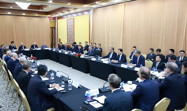 李強(qiáng)指出,中國有信心有能力保持經(jīng)濟(jì)穩(wěn)定健康發(fā)展,為包括美國企業(yè)在內(nèi)的各國企業(yè)創(chuàng)造更多機(jī)遇。無論外部環(huán)境如何變化,中國都將竭盡所能為外資企業(yè)發(fā)展提供更多確定性。一是中國將始終秉持建設(shè)性和負(fù)責(zé)任態(tài)度,同美方在平等、尊重、互惠的基礎(chǔ)上,共同促進(jìn)中美經(jīng)貿(mào)關(guān)系企穩(wěn)向好。二是中國將始終聚焦發(fā)展,推動自身經(jīng)濟(jì)穩(wěn)健增長。中國經(jīng)濟(jì)有獨(dú)特的穩(wěn)定運(yùn)行機(jī)制,市場潛力加速釋放、創(chuàng)新動力持續(xù)迸發(fā)、經(jīng)濟(jì)活力不斷增強(qiáng),這對企業(yè)意味著巨大的可預(yù)期的發(fā)展機(jī)遇。三是中國將始終信守承諾,堅(jiān)定不移擴(kuò)大對外開放,持續(xù)放寬準(zhǔn)入、擴(kuò)大進(jìn)口,積極回應(yīng)外資企業(yè)關(guān)切,幫助解決實(shí)際困難,讓各國企業(yè)在中國安心經(jīng)營發(fā)展。
