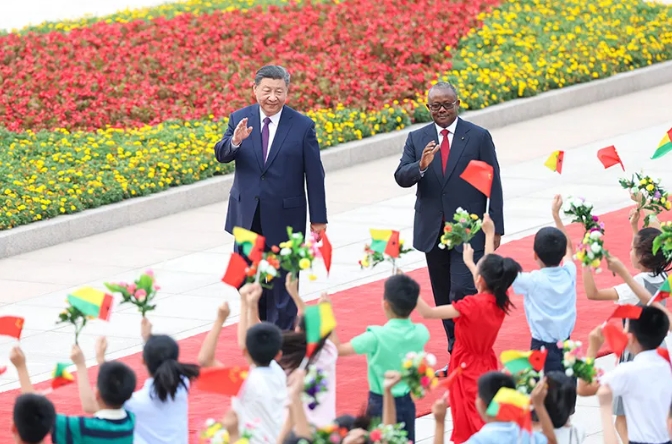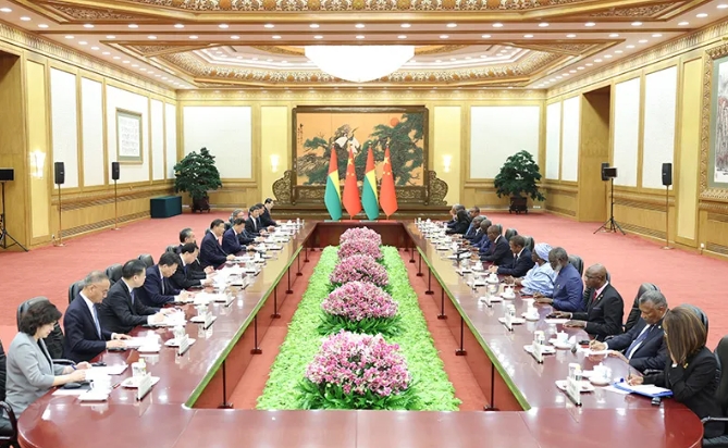 習(xí)近平指出,中國和非洲都擁有燦爛的文明,都有被殖民、被侵略的慘痛歷史,都珍惜和追求民族獨立和解放。中國和非洲國家彼此的支持和幫助是真誠的,是真實親誠的友好兄弟和發(fā)展中國家團結(jié)合作的典范,新形勢下我們應(yīng)該聯(lián)手創(chuàng)造新時代。中非合作論壇是中非人民踐行和平共處五項原則、促進共同發(fā)展的重要平臺。兩周前,我們在北京隆重舉行和平共處五項原則發(fā)表70周年紀念活動。今年秋季將在北京舉辦新一屆中非合作論壇峰會。中方愿同幾內(nèi)亞比紹等非洲國家一道,弘揚和平共處五項原則,共商新時代中非合作大計,維護發(fā)展中國家共同利益和國際公平正義,攜手共建高水平中非命運共同體,推動構(gòu)建人類命運共同體。