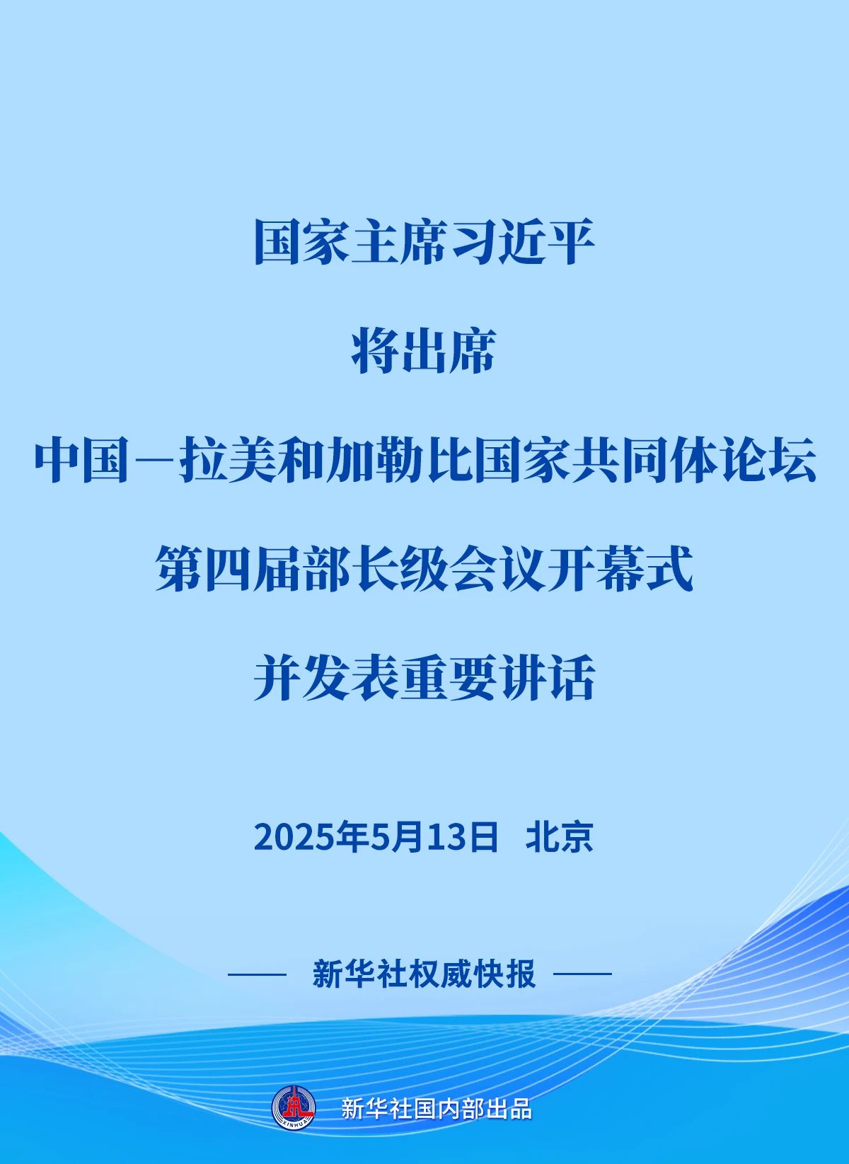 外交部發(fā)言人5月11日宣布:經(jīng)中拉雙方共同商定,中國-拉美和加勒比國家共同體論壇第四屆部長級會議將于5月13日在北京舉行。國家主席習(xí)近平將出席會議開幕式并發(fā)表重要講話。