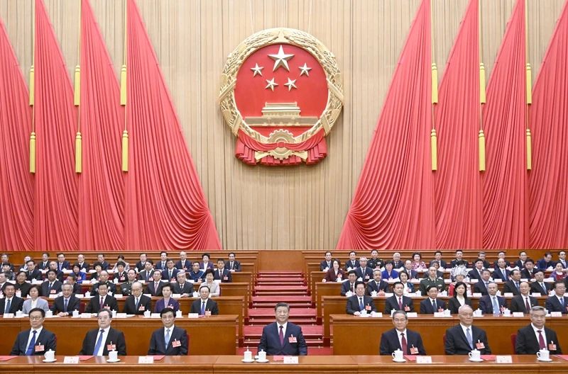 3月11日下午,第十四屆全國人民代表大會(huì)第三次會(huì)議在北京人民大會(huì)堂閉幕。黨和國家領(lǐng)導(dǎo)人習(xí)近平、李強(qiáng)、王滬寧、蔡奇、丁薛祥、李希、韓正等在主席臺(tái)就座。新華社記者 李學(xué)仁 攝