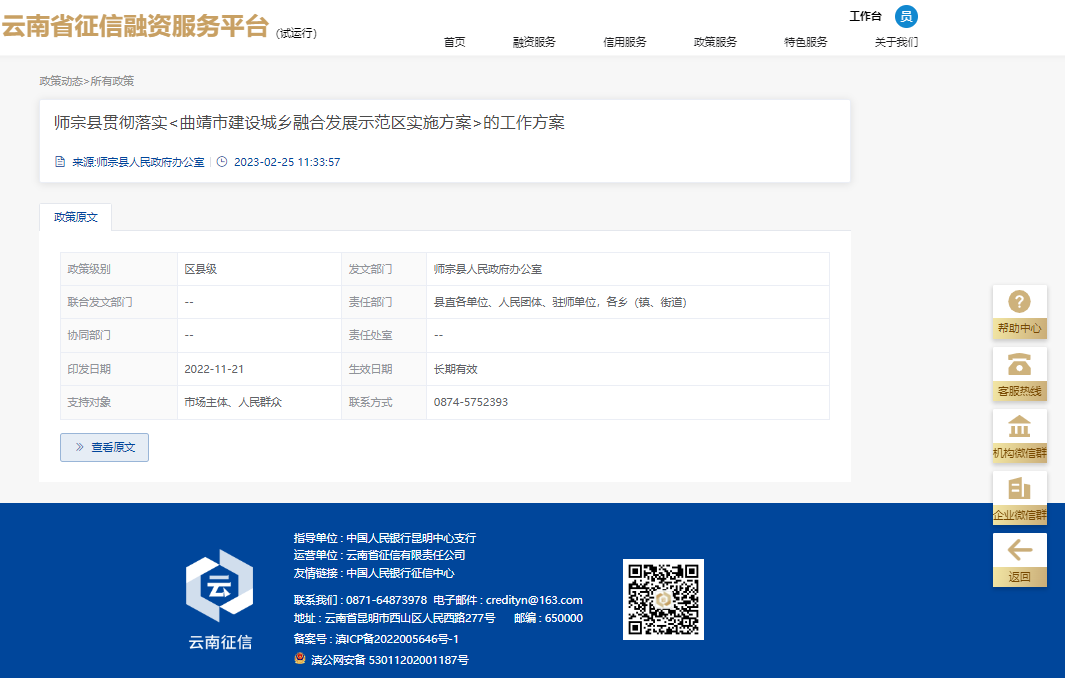 2023年2月28日,云南省征信融資服務(wù)平臺(tái)(以下簡(jiǎn)稱“省征信平臺(tái)”)順利與云南省惠企政策申報(bào)系統(tǒng)(以下簡(jiǎn)稱“省惠企平臺(tái)”)對(duì)接?!笆』萜笃脚_(tái)”是全省統(tǒng)一的惠企政策申報(bào)系統(tǒng),由省工業(yè)和信息化廳負(fù)責(zé)建設(shè)管理,用于全面歸集涉企政策,實(shí)現(xiàn)政策匯集發(fā)布和普惠政策免申即享。