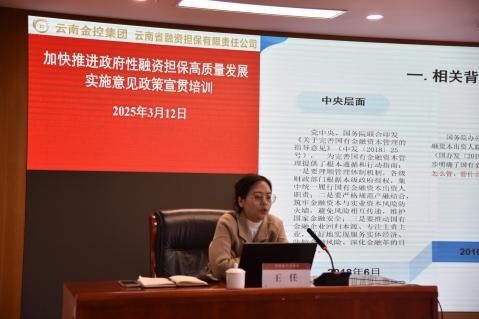 3月12日,在省財(cái)政廳的高度重視和有力指導(dǎo)下,云南金控集團(tuán)所屬省融資擔(dān)保公司在昆明順利舉辦政策宣貫培訓(xùn),通過(guò)認(rèn)真學(xué)習(xí)領(lǐng)會(huì)政策文件精神和工作部署要求,進(jìn)一步統(tǒng)一思想,提高認(rèn)識(shí),推動(dòng)改革政策貫徹落實(shí)。省財(cái)政廳金融處、16個(gè)州市財(cái)政局(金融辦)、省融資擔(dān)保公司及各州市19家政府性融資擔(dān)保機(jī)構(gòu)參加培訓(xùn)。
