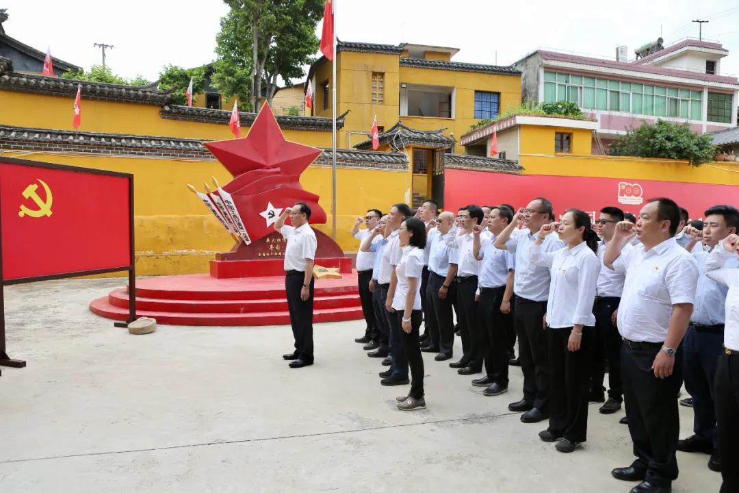 ? ? ? ?在紅軍長征柯渡紀念館廣場雕塑前,遲中華帶領全體黨員重溫入黨誓詞,再一次向黨旗莊嚴宣誓。