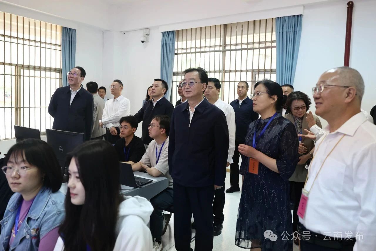 王寧在云南師大附中考點(diǎn),視頻查看考場(chǎng),聽取全省高考組織保障工作情況介紹。