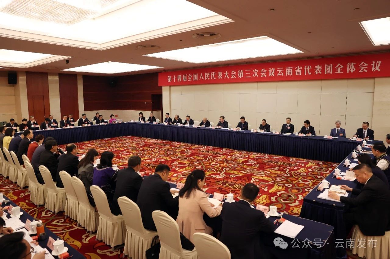 3月10日,出席十四屆全國人大三次會議的云南省代表團(tuán)舉行全體會議。