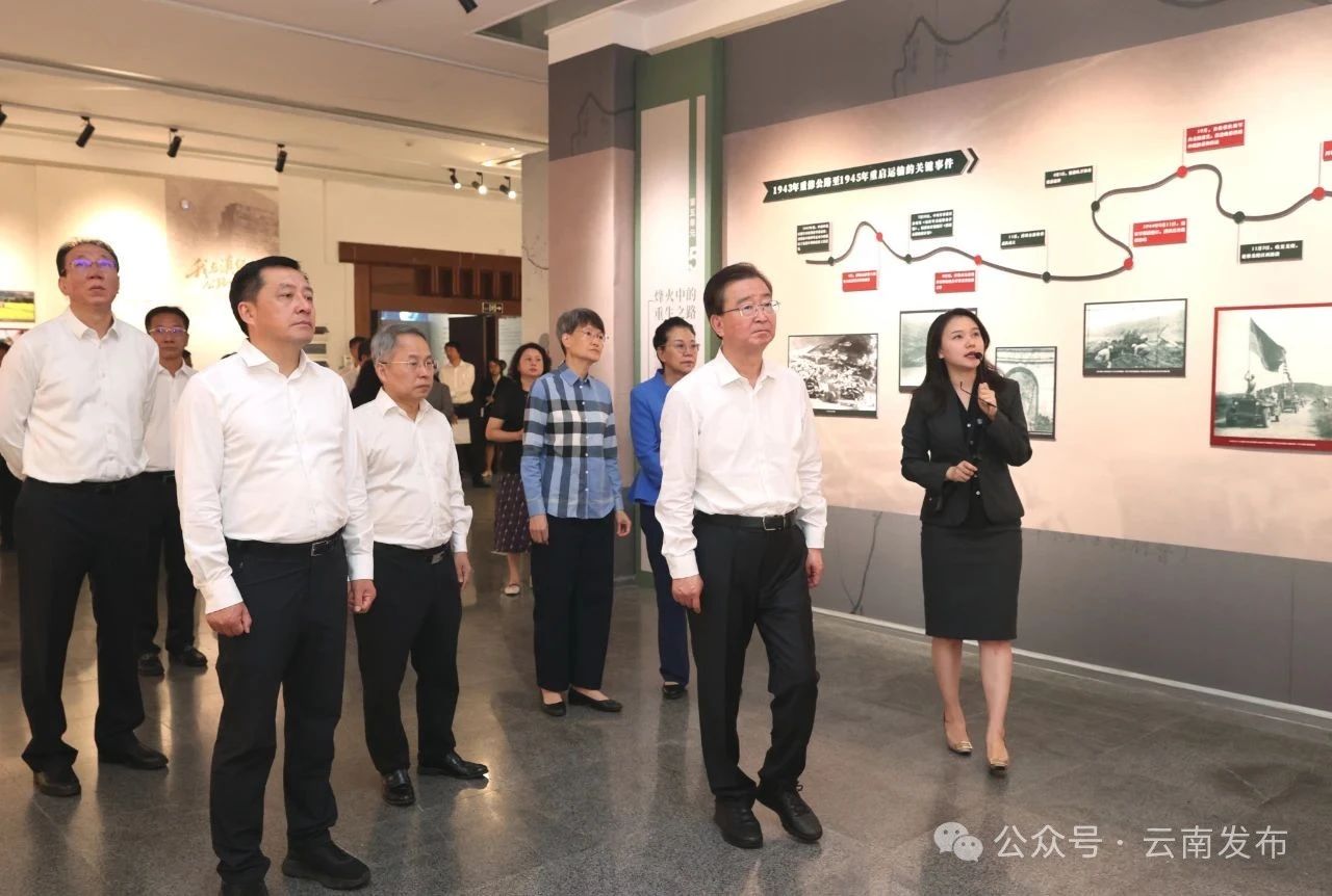 王寧等領(lǐng)導(dǎo)同志仔細(xì)參觀展覽,詳細(xì)詢問檔案文獻(xiàn)背后的抗戰(zhàn)故事。王寧強(qiáng)調(diào),要深刻學(xué)習(xí)領(lǐng)悟習(xí)近平總書記關(guān)于中國人民抗日戰(zhàn)爭和世界反法西斯戰(zhàn)爭的重要論述精神;深刻感悟在艱苦卓絕的抗日戰(zhàn)爭中,中國共產(chǎn)黨高舉抗日民族統(tǒng)一戰(zhàn)線的旗幟,全體中華兒女為國家生存而戰(zhàn)、為民族復(fù)興而戰(zhàn)、為人類正義而戰(zhàn)的雄壯史詩;深刻認(rèn)識邊疆各族人民同仇敵愾、誓死筑路,為中國人民抗日戰(zhàn)爭、世界反法西斯戰(zhàn)爭勝利作出的重大貢獻(xiàn)。要大力宣傳弘揚(yáng)偉大愛國主義精神,精心組織好系列紀(jì)念活動(dòng),講好抗戰(zhàn)故事,把偉大抗戰(zhàn)精神一代代傳下去。要用好用活紅色檔案資源,挖掘好滇緬公路、西南聯(lián)大等云南抗戰(zhàn)歷史資源,推進(jìn)紅色檔案資源展示進(jìn)校園、進(jìn)機(jī)關(guān)、進(jìn)企業(yè)、進(jìn)社區(qū)。要認(rèn)真組織好觀展工作,賡續(xù)紅色血脈,汲取奮進(jìn)力量,堅(jiān)定理想信念,激勵(lì)各族干部群眾團(tuán)結(jié)奮進(jìn)新時(shí)代,開創(chuàng)云南發(fā)展新局面。