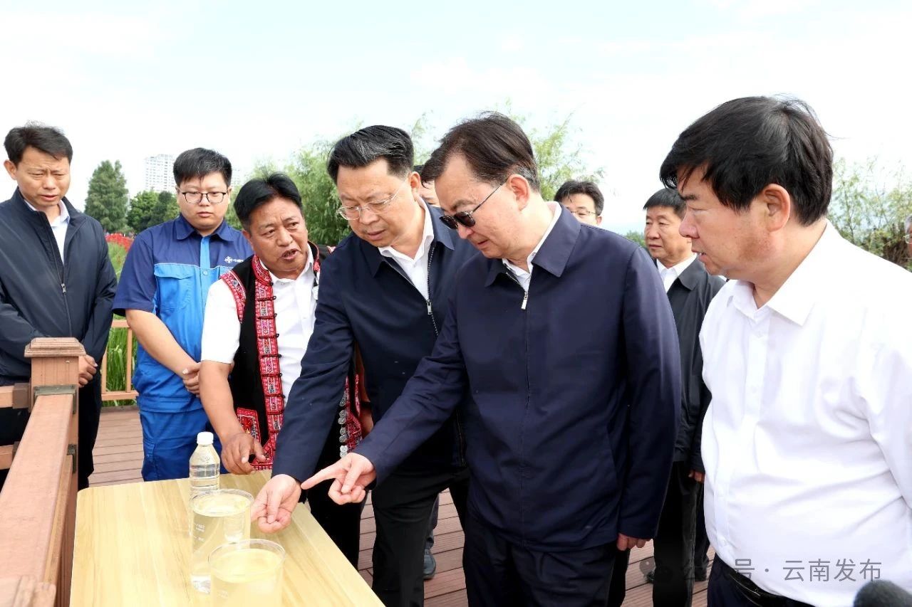 王寧在異龍湖邊察看水體,仔細(xì)了解在淺水湖區(qū)探索開(kāi)展內(nèi)源污染治理取得的成效。