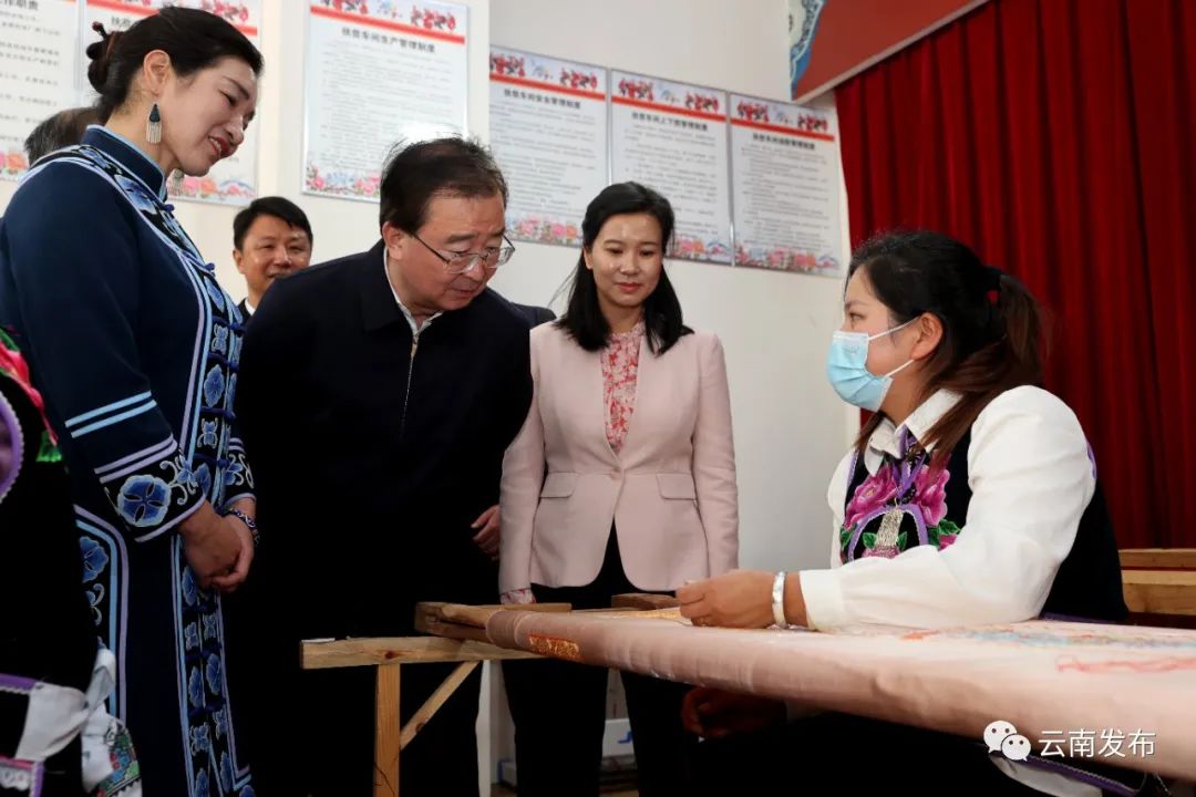 王寧還走進(jìn)七彩彝繡文化傳播有限公司了解彝繡產(chǎn)業(yè)發(fā)展情況,要求發(fā)揮好基層黨組織作用,進(jìn)一步提升產(chǎn)業(yè)組織化程度,讓更多群眾靠彝繡產(chǎn)業(yè)增加收入。