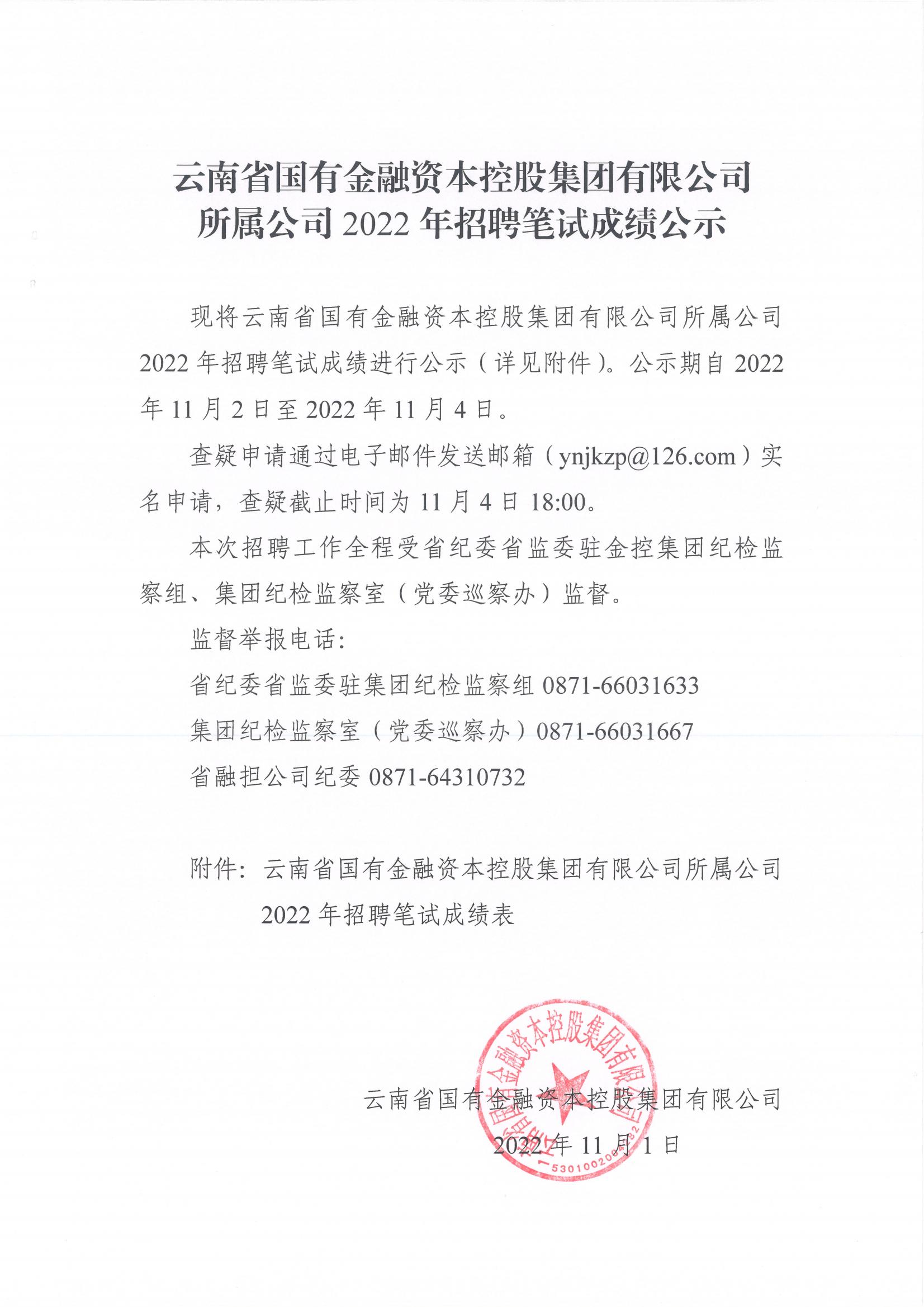 云南省國有金融資本控股集團(tuán)有限公司所屬公司2022年招聘筆試成績公示