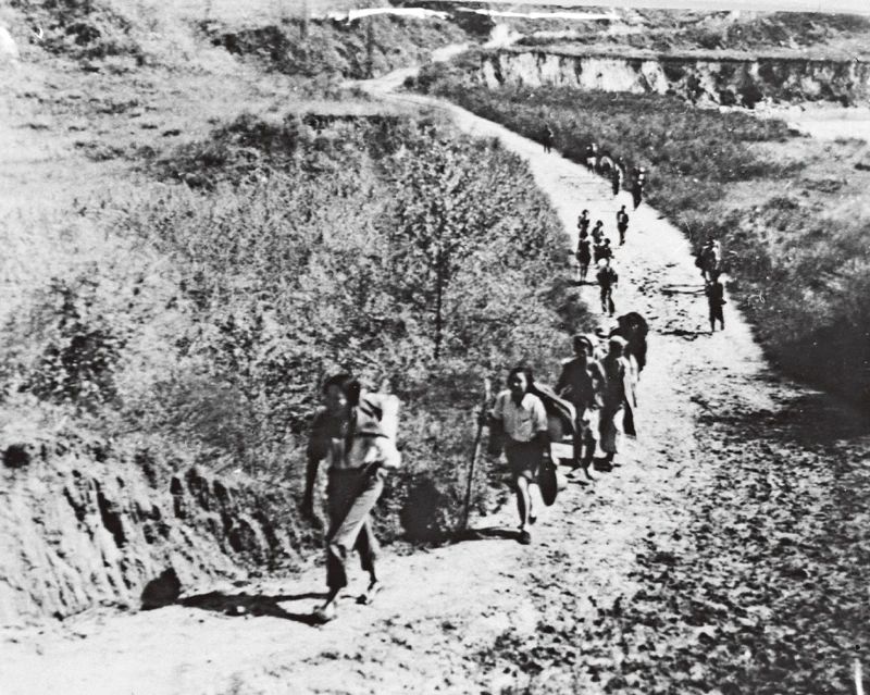 延安時期,全國各地的愛國志士和抗日青年冒著生命危險,沖破敵人重重封鎖,奔赴延安尋求救國真理和道路。圖為愛國青年奔赴延安。?延安革命紀(jì)念館供圖