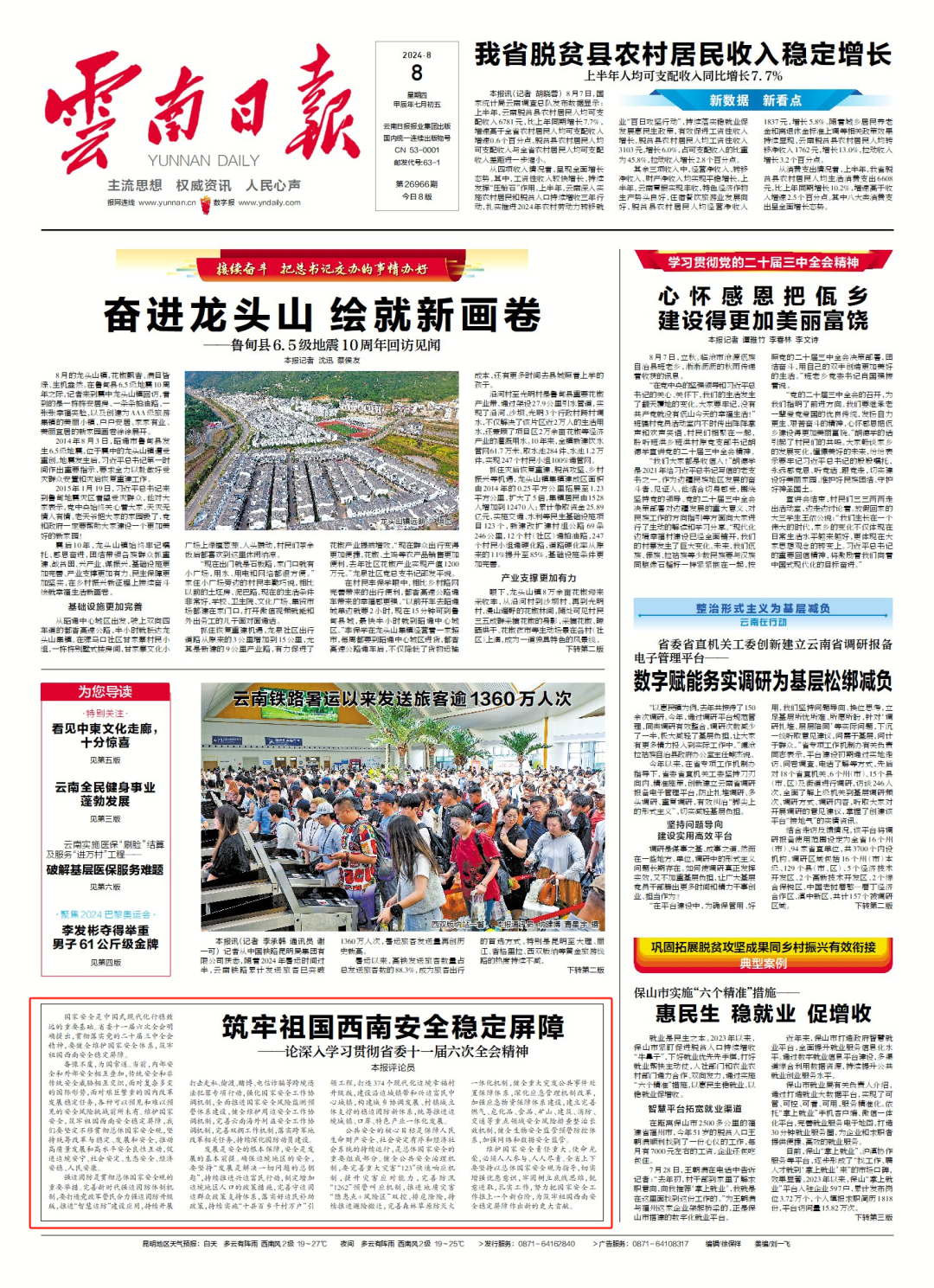 《云南日報》頭版