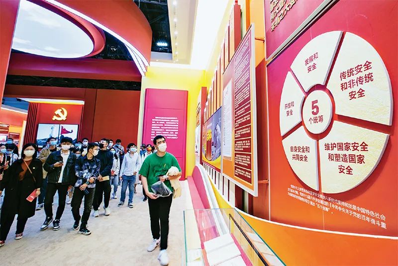圖為2022年10月2日,觀眾在北京展覽館參觀“奮進(jìn)新時(shí)代”主題成就展第九單元“全面踐行總體國(guó)家安全觀 開創(chuàng)新時(shí)代國(guó)家安全新局面”展廳。 劉新武/攝