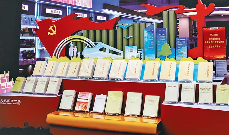 隨著強(qiáng)國建設(shè)、民族復(fù)興偉業(yè)的推進(jìn),習(xí)近平新時代中國特色社會主義思想不斷豐富拓展并不斷體系化學(xué)理化,構(gòu)成一個邏輯嚴(yán)密、內(nèi)涵豐富、系統(tǒng)全面、博大精深的科學(xué)體系,實現(xiàn)了馬克思主義中國化時代化新的飛躍。圖為2023年10月12日在北京圖書大廈拍攝的學(xué)習(xí)貫徹習(xí)近平新時代中國特色社會主義思想主題教育圖書專區(qū)。 劉新武/攝