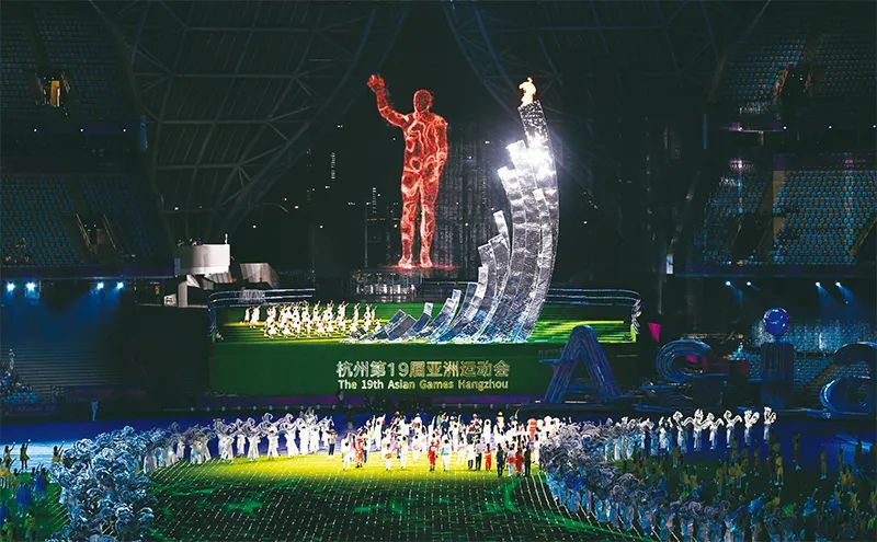 黨的十八大以來,在習(xí)近平新時代中國特色社會主義思想指引下,我國各項事業(yè)取得歷史性成就、發(fā)生歷史性變革。在剛剛閉幕的杭州第19屆亞洲運動會上,從首創(chuàng)“亞運數(shù)字火炬手”到推出電子身份注冊卡、探索使用5.5G新技術(shù)……數(shù)字賦能、科技助力,讓世界看到了中國的科技實力和東方文化的魅力。圖為2023年10月8日,在杭州亞運會閉幕式上,數(shù)字火炬手“弄潮兒”向現(xiàn)場觀眾揮手致意。 新華社記者 王鵬/攝