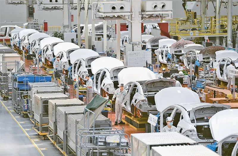 2023年4月12日,習(xí)近平總書記來到廣汽埃安新能源汽車股份有限公司考察。他走進(jìn)企業(yè)展廳、總裝車間、電池生產(chǎn)車間等,了解企業(yè)突破關(guān)鍵核心技術(shù)和推動(dòng)制造業(yè)高端化、智能化、綠色化等進(jìn)展情況。圖為廣汽埃安新能源汽車股份有限公司總裝生產(chǎn)線。 新華社記者 鄧華/攝