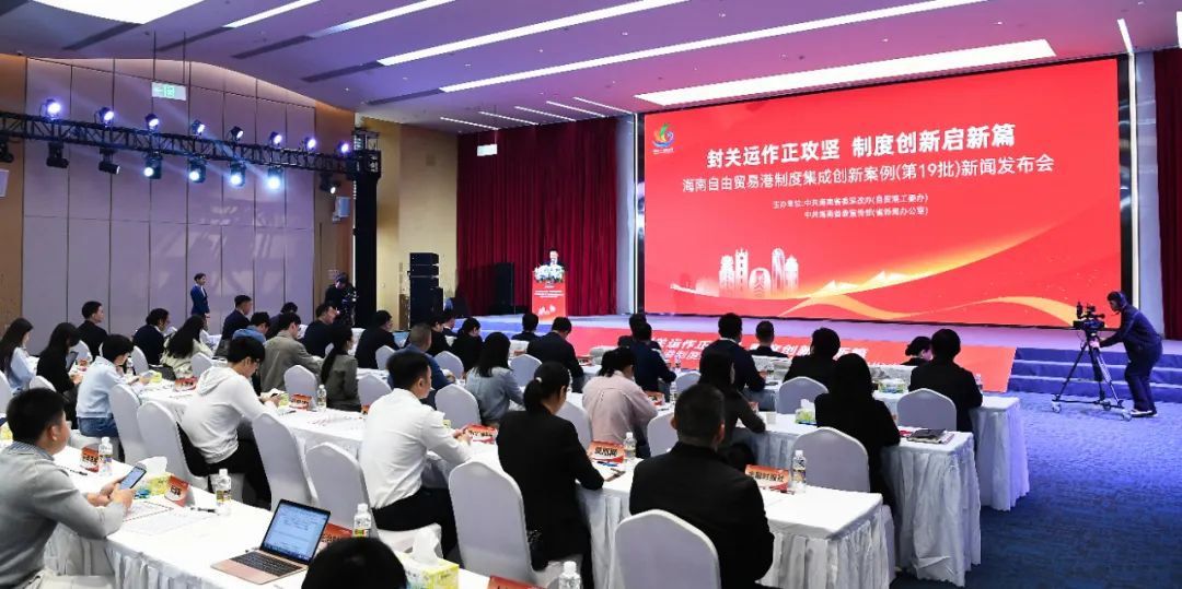 2025年2月19日,海南自由貿(mào)易港制度集成創(chuàng)新案例(第19批)新聞發(fā)布會在海口舉行,加工增值內(nèi)銷免關(guān)稅政策從“試驗點”到“試驗田”等6項案例入選這批案例。圖為當(dāng)日新聞發(fā)布會現(xiàn)場。新華社記者 楊冠宇/攝