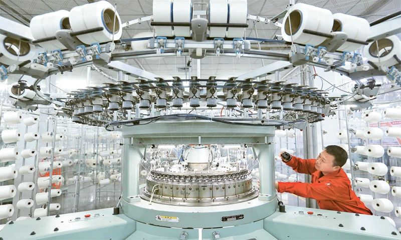 近年來(lái),我國(guó)持續(xù)引導(dǎo)紡織企業(yè)加大新技術(shù)、新裝備、新工藝的研發(fā)和投入,加快信息化和工業(yè)化融合升級(jí)改造。圖為2025年5月19日,山東省青島市即墨區(qū)一家紡織企業(yè)的工人在生產(chǎn)出口海外市場(chǎng)的服裝面料。 新華社發(fā) 梁孝鵬/攝