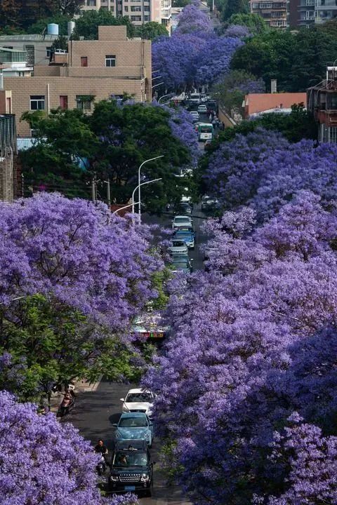 昆明教場(chǎng)中路的藍(lán)花楹 新華社記者 陳欣波 攝