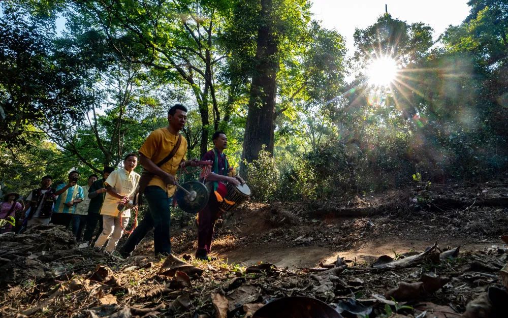 景邁山茶農(nóng)前往古茶林準(zhǔn)備舉行祭拜儀式。新華社記者 江文耀 攝