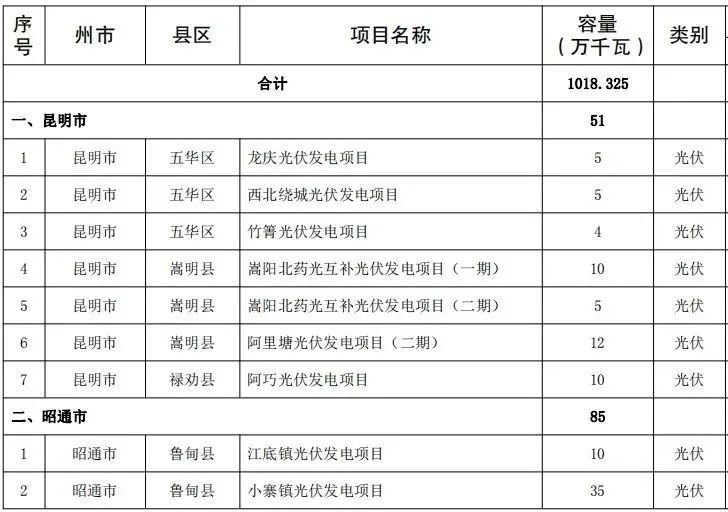 結(jié)合全省新能源項(xiàng)目庫(kù)情況,考慮新能源對(duì)全省能源投資的重要支撐作用,納入云南省2024年第一批新能源項(xiàng)目開發(fā)建設(shè)方案實(shí)施的項(xiàng)目共141個(gè),裝機(jī)1018.325萬(wàn)千瓦。