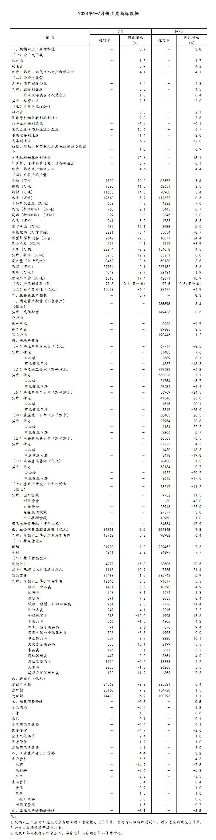 ?。?)規(guī)模以上工業(yè)的統(tǒng)計范圍為年主營業(yè)務收入2000萬元及以上的工業(yè)企業(yè)。