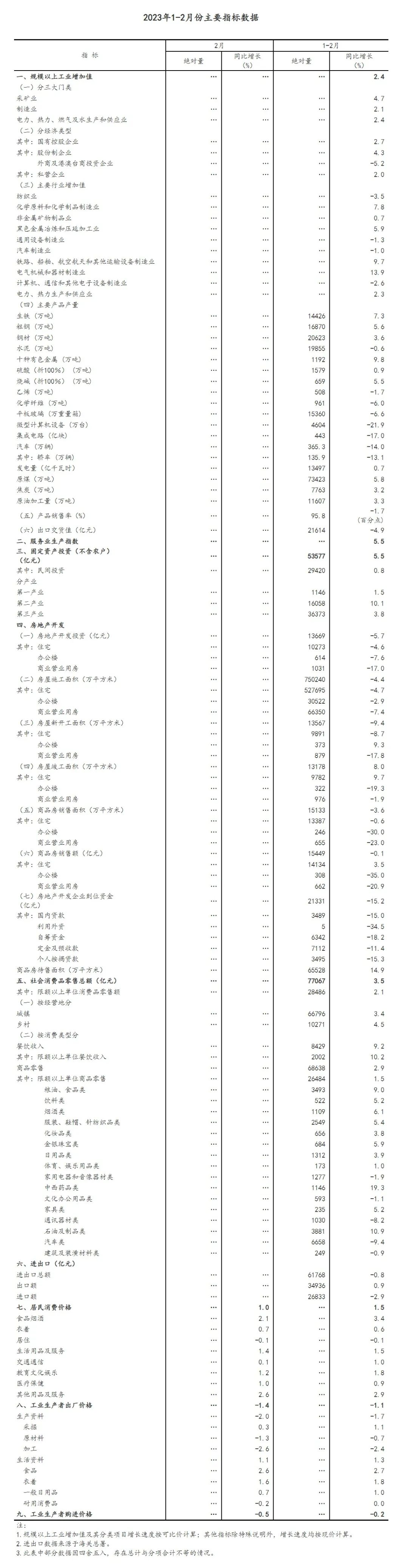 ?(2)規(guī)模以上工業(yè)增加值及其分類項(xiàng)目增長速度按可比價(jià)計(jì)算,為實(shí)際增長速度;其他指標(biāo)除特殊說明外,均按現(xiàn)價(jià)計(jì)算,為名義增長速度。