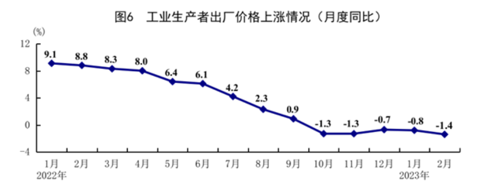 ?1-2月份,全國工業(yè)生產(chǎn)者出廠價(jià)格同比下降1.1%。分月看,1月份同比下降0.8%,環(huán)比下降0.4%;2月份同比下降1.4%,環(huán)比持平。1-2月份,工業(yè)生產(chǎn)者購進(jìn)價(jià)格同比下降0.2%。