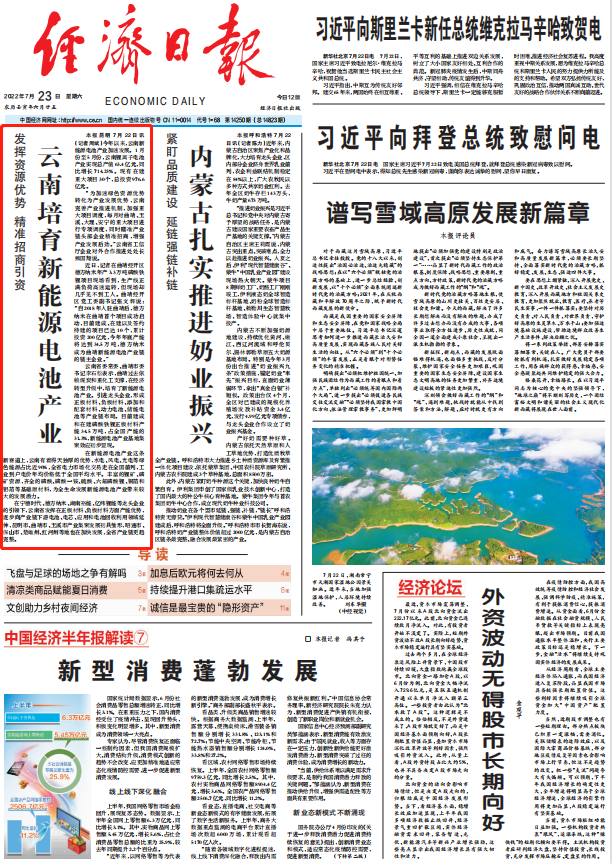 在新能源電池產(chǎn)業(yè)這條新賽道上,云南有著得天獨厚的優(yōu)勢,水電、風電、光電等綠色能源占比近90%,全省電力市場化交易走在全國前列,工業(yè)到戶電價年均價格低于全國平均水平。豐富的鋰礦、磷礦資源,齊全的磷酸、磷酸一銨、硫酸、六氟磷酸鋰、銅箔和鋁箔等基礎(chǔ)原材料,為全生命發(fā)展新能源電池產(chǎn)業(yè)帶來較大的發(fā)展?jié)摿Α?/span>
