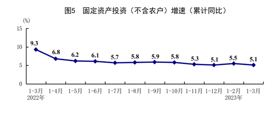 一季度,全國固定資產(chǎn)投資(不含農(nóng)戶)107282億元,同比增長5.1%,與上年全年持平。分領(lǐng)域看,基礎(chǔ)設施投資增長8.8%,制造業(yè)投資增長7.0%,房地產(chǎn)開發(fā)投資下降5.8%。全國商品房銷售面積29946萬平方米,下降1.8%;商品房銷售額30545億元,增長4.1%。分產(chǎn)業(yè)看,第一產(chǎn)業(yè)投資增長0.5%,第二產(chǎn)業(yè)投資增長8.7%,第三產(chǎn)業(yè)投資增長3.6%。民間投資增長0.6%。高技術(shù)產(chǎn)業(yè)投資增長16.0%,其中高技術(shù)制造業(yè)和高技術(shù)服務業(yè)投資分別增長15.2%、17.8%。高技術(shù)制造業(yè)中,電子及通信設備制造業(yè)、醫(yī)療儀器設備及儀器儀表制造業(yè)投資分別增長20.7%、19.9%;高技術(shù)服務業(yè)中,電子商務服務業(yè)、科技成果轉(zhuǎn)化服務業(yè)投資分別增長51.5%、51.3%。社會領(lǐng)域投資增長8.3%,其中衛(wèi)生、教育投資分別增長21.6%、6.2%。3月份,固定資產(chǎn)投資(不含農(nóng)戶)環(huán)比下降0.25%。